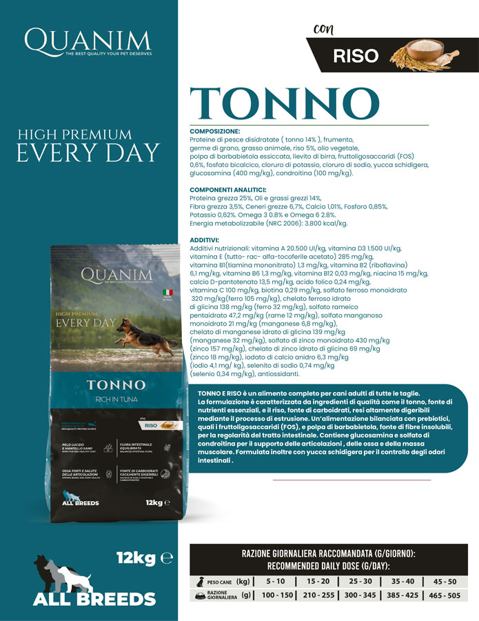 Alimento completo per Cani adulti a base di Tonno e Riso